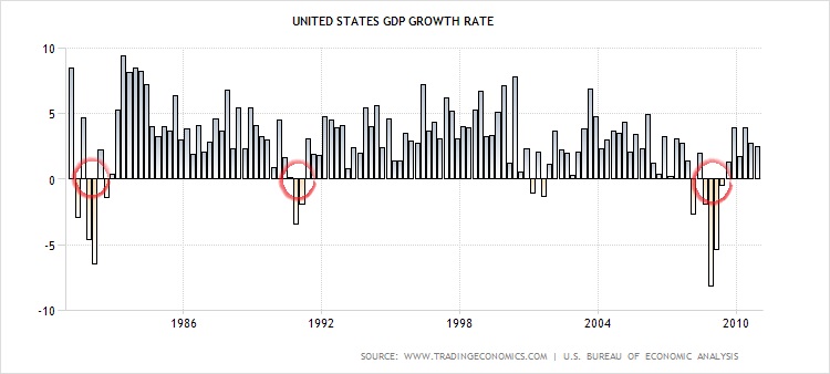 In the 30 year period from the recovery in 1983 to 2013, there have been only 10 quarters where GDP was 0% or less with only 2 recessions in that period (www,tradingeconomics.com). Reagan’s “voodoo economics” cut the number of recessionary quarters in half. The average economic boom/bust cycle went from 6 years to 15 years, with average recovery and growth cycles growing from 4 to 5 years up to 9 to 10 years.
