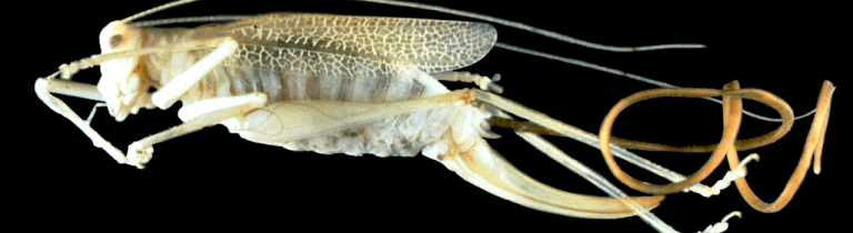 The larvae burrows into its host’s guts and gorges itself on nutrients, and there the parasite stays until it matures into an adult worm, often 8 to 14 inches long. Though the exact mechanism of the parasite’s control of the host’s behavior isn’t clear, the host, with its abdomen bulging from the writhing worm within, single-mindedly seeks out a body of water and throws itself into a watery doom. As water seeps into its host’s body, the worm bursts out from the anus or mouth of its dead or dying host, before swimming away to mate in the watery depths with which to create another horrific brood of parasites.
